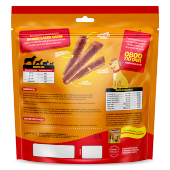 Nas lojas da Poli-Pet você encontra o Palito Mastigável Fino Petiscão Sabor Carne para Cachorros nas opções de: 250gr, 500gr e 1,0kg.