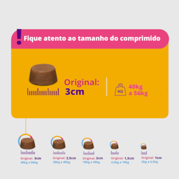 - Uso Conveniente: comprimido oral indicado para cães de 40 kg a 56 kg;