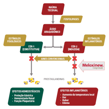 - Atua preferencialmente na inibição da Cicloxigenase 2 (COX-2), essencial no controle da inflamação;