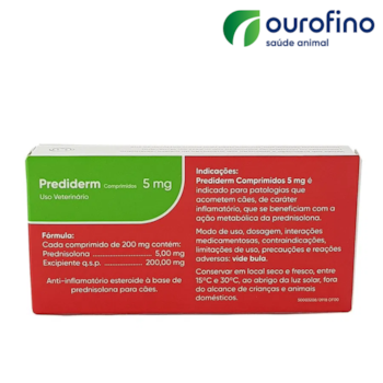 Anti-Inflamatorio Prediderm Ourofino para Cães Com 10 Comprimidos 5mg