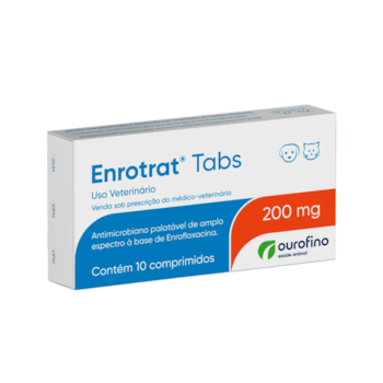 Antimicrobiano Enrotrat Tabs Ourofino 200mg para Cães e Gatos Com 10 Comprimidos