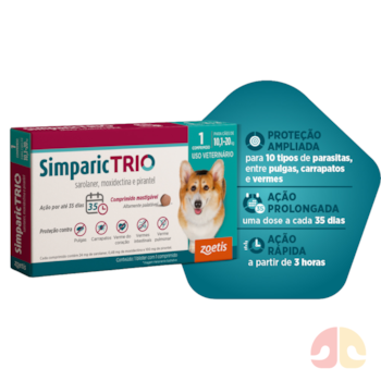 Antipulgas e Vermífugo Simparic Trio 24mg para Cães de 10,1kg a 20kg com 1 Comprimido