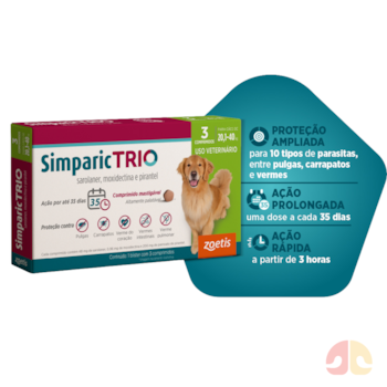 Antipulgas e Vermífugo Simparic Trio 48mg para Cães de 20,1kg a 40kg com 3 Comprimidos