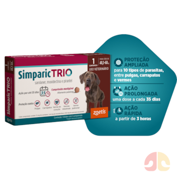 Antipulgas e Vermífugo Simparic Trio 72mg para Cães de 40,1kg a 60kg com 1 Comprimido