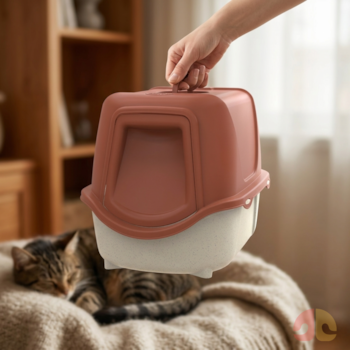 O design fechado reduz sujeira, controla odores e oferece ao gato um espaço seguro e reservado. Essa proteção contribui para o bem-estar emocional do pet, evitando estresse e comportamentos indesejados.