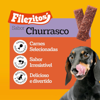 - Sabor Irresistível: bifinhos sabor churrasco que os cães adoram e pedem sempre mais;