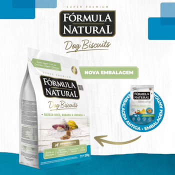 Biscoito Fórmula Natural Dog Biscuits 250gr Cães de Porte Pequeno sabor Batata Doce, Banana e Linhaça