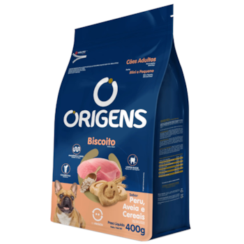 Biscoito Origens sabor Peru, Aveia e Cereais para cachorros adultos de porte mini e pequeno 400gr