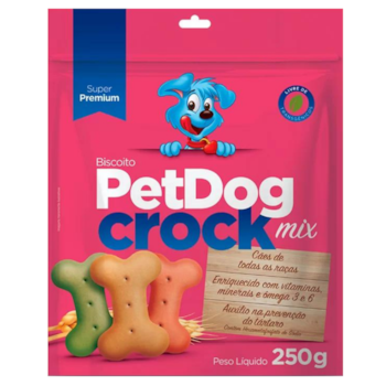O Biscoito Pet Dog Crock Mix é uma ótima forma de recompensar o carinho que o seu cachorro lhe dá todo o dia, e pode ser utilizado em adestramentos como forma de recompensa. O Biscoito Pet Dog Crock Mix é um petisco assado e possui um sabor leve e agradável para o paladar, que vai agradar todos os paladares caninos. Sua fórmula contribui para o controle do tártaro, e enriquecido com ômegas 3 e 6, produzido no tamanho adequado para cachorros de raças pequenas para que não se engasguem durante o consumo.