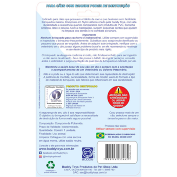 Além disso, o Osso Buddy Nylon é fabricado para não lascar ou soltar pedaços grandes. Isso é fundamental para a segurança do seu cão, pois evita que ele engula pedaços que possam causar danos ao sistema digestivo. Com esse brinquedo, você pode ficar tranquilo sabendo que o seu cão está se divertindo sem correr riscos desnecessários.