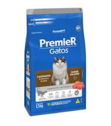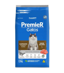 na assinatura polipetRação PremieR Ambientes Internos gatos castrados até 6 anos salmão 1,5kg