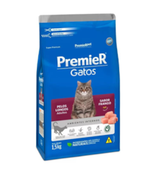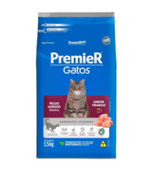 na assinatura polipetRação PremieR Ambientes Internos Gatos Pelos Longos Adultos Frango 1,5 kg