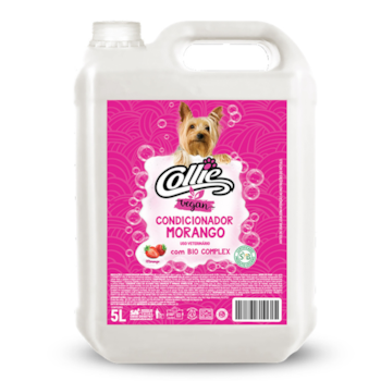 Condicionamento Intenso e Natural: O Condicionador Collie Vegan Morango 5L proporciona uma nutrição profunda, deixando a pelagem macia, brilhante e fácil de pentear.