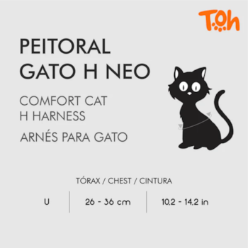 O Conjunto Peitoral Neocomfy e Guia TOH oferece conforto e estilo para os passeios do seu gato. Indicado para todas as raças e portes, este conjunto é perfeito para proporcionar segurança e liberdade de movimento.