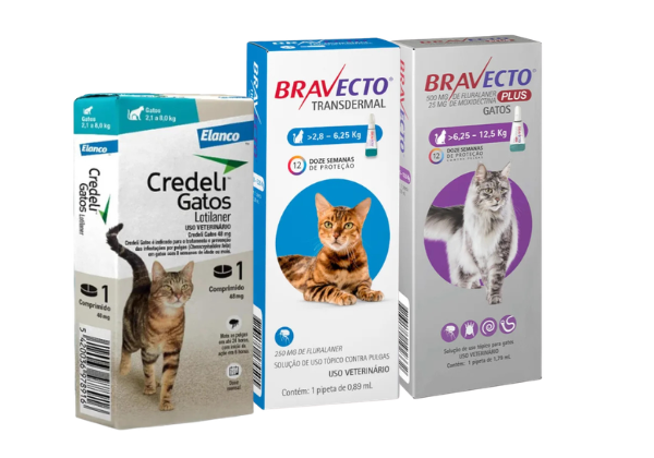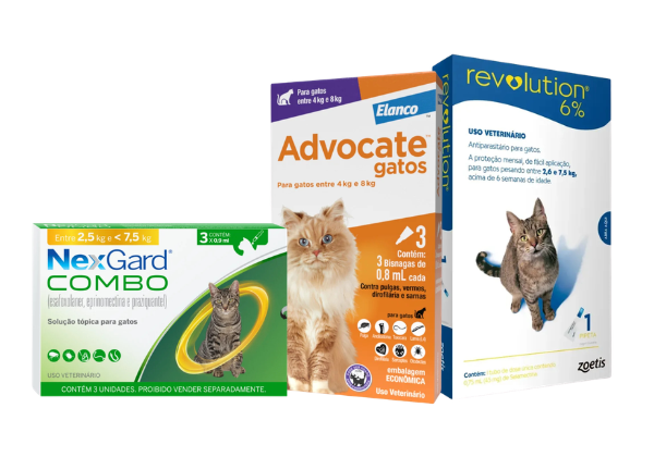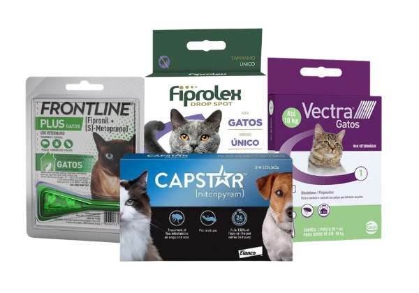 Aqui, pais e mães de gato encontram diferentes tipos de antipulgas, como comprimidos, coleiras e itens de banho, incluindo shampoos e sabonetes específicos. A proposta é facilitar a escolha do tutor com opções seguras, eficazes e adaptadas ao comportamento mais sensível e às necessidades específicas dos gatos.