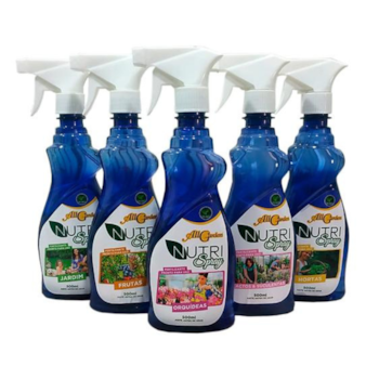 A linha de Fertilizante All Garden Nutri Spray é uma série de produtos prontos para uso, auxiliando no desenvolvimento da planta, contribuindo para um melhor crescimento, frutificação e floração.