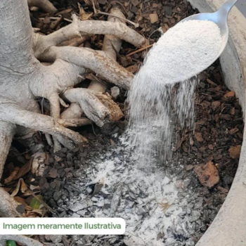 | Frutas em vasos | 500L; 80x80cm ou maior | 100g (4 colheres de sopa) | - | Espalhar sobre a terra e regar até diluir o adubo da superfície e a água começar a sair pelos furos do vaso. |