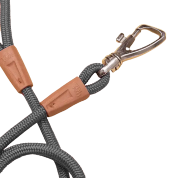 Uma característica destacada da guia é o mosquetão exclusivo, que oferece maior segurança e praticidade. Sem a necessidade de rosquear, o encaixe é resistente e confiável. Além disso, a base giratória permite movimentos livres, proporcionando maior conforto tanto para o cão quanto para o dono durante o passeio.