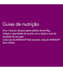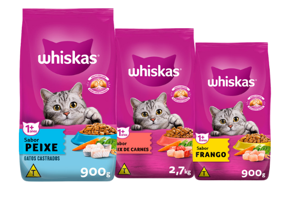 Para isso, oferece uma ampla gama de produtos, como rações secas e molhadas, que são adaptadas às preferências e necessidades alimentares dos gatos, garantindo que cada refeição seja uma experiência deliciosa e saudável. Com uma linha diversificada, a Whiskas busca agradar até os felinos mais exigentes, sempre com a preocupação de oferecer alimentos de alta qualidade, que favoreçam a saúde e proporcionem prazer em cada refeição, contribuindo para a longevidade e o bem-estar dos gatos.