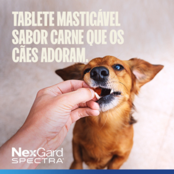 O tablete mastigável sabor carne torna a administração simples e agradável para o seu cão. A alta palatabilidade do NexGard Spectra significa que a maioria dos cães o consome voluntariamente, reduzindo o estresse para o tutor e o pet.
