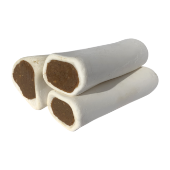O Osso Tubinho Recheado é um produto natural e livre de aditivos químicos, tornando-o uma opção mais saudável para os cães.