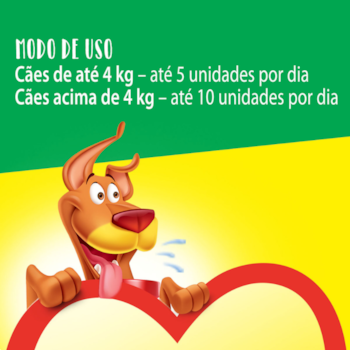 - Indicação de uso: demonstração de afeto ou mimo, prêmio de adestramento quando o pet se mostrar obediente, como lanche nos passeios;