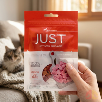 O Petisco Just Cubos de Pato 55g para Cães e Gatos transforma o momento do agrado em uma experiência equilibrada. Enquanto o pet desfruta de um snack saboroso, o tutor mantém coerência com uma proposta de ingredientes naturais e proteína de qualidade.