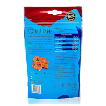 O Snack Barkkies Chicken Soft está disponível em embalagens práticas de 100g, um tamanho perfeito para garantir que o produto permaneça fresco e saboroso por mais tempo. Esse formato facilita o transporte e o armazenamento, tornando-o uma excelente opção para ser levada em passeios, viagens ou até mesmo guardada em casa. Cada vez que você abrir o pacote, poderá oferecer ao seu cão um petisco com o mesmo frescor e qualidade do primeiro.