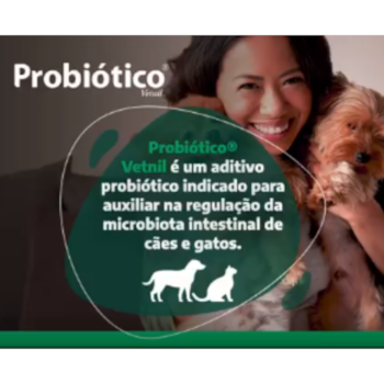 O Probiótico Vetnil para Cachorros e Gatos é probiótico destinado para regularização do microbita intestinal do seu pet, adicionando 4 tipos de cepas de bactérias e uma levedura para que se alimentem e se espalhem pela região intestinal.