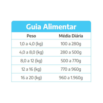 Com a indicação para alimentação diária, esse alimento é uma excelente escolha para ser incluído no cardápio do seu filhote. Seu sabor agradável e a qualidade dos ingredientes fazem com que ele seja uma refeição que seu pet vai adorar.