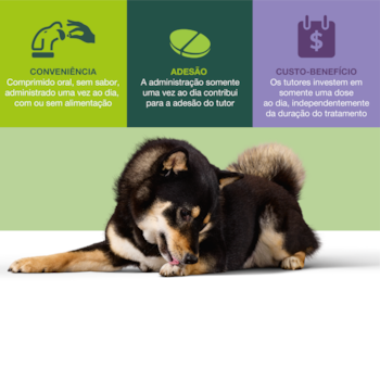 • Administração: Dose única diária, fácil de administrar e bem aceita pelos cães.