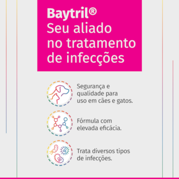 O Antibiótico Baytril Flavour é uma medicação base enrofloxacino, facilmente absorvido pelo organismo, se destacando como um potente agente quimioterápico, contra infecções dermicas, respiratória, entéricas, otóticas e genito-urinária.