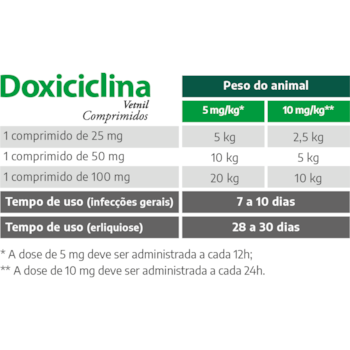 Além da erliquiose, a doxiciclina é indicada para o tratamento de várias infecções causadas por bactérias sensíveis. Em cães, as doses recomendadas variam de acordo com a gravidade da infecção: