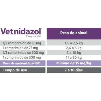 Vetnidazol® Comprimidos é um produto seguro, amplamente utilizado e recomendado por veterinários. Sua eficácia no tratamento de infecções locais e sistêmicas causadas por bactérias anaeróbias e protozoários faz dele um componente essencial no arsenal terapêutico veterinário. A atuação rápida e eficiente do metronidazol garante uma recuperação mais rápida e menos dolorosa para o animal.