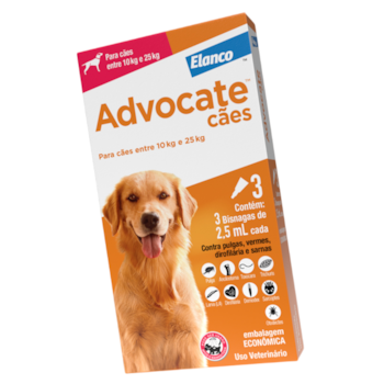 Antipulgas Advocate 2,5ml Para Cães De 10kg Até 25kg Com 3 Pipetas