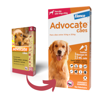 Com imidacloprida em sua composição, o Antipulgas Advocate se espalha pela pele e pelos do seu pet em até 12 horas. Após esse período, as pulgas que subirem no cão, morrerão rapidamente ao entrar em contato com o princípio ativo, fazendo com que não seja necessário que o pet seja picado para que o parasita possa morrer. Além da imidacloprida em sua composição, o Antipulgas Advocate possui moxidectina que combate a ação de vermes intestinais jovens e adultos interrompendo o seu ciclo de vida, combatendo as reinfestações de vermes intestinais.