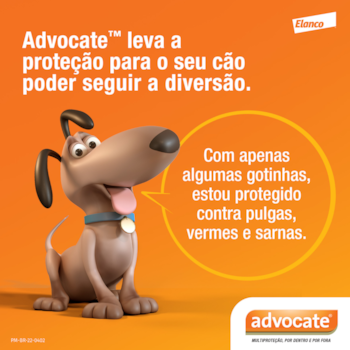 O Antipulgas Advocate oferece proteção completa contra pulgas, vermes intestinais e do coração (dirofilariose), além das sarnas.