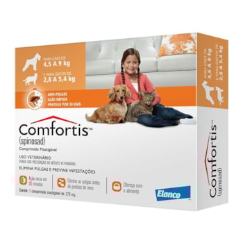 Antipulgas Comfortis 270mg para Cachorros de 4,5kg à 9kg e Gatos de 2,8kgr à 5,4kgr com 1 Comprimido