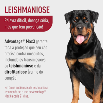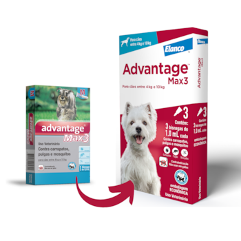 Não é recomendável a administração do Antipulgas e Carrapatos Advantage Max3 em filhotes com menos de 7 semanas de vida. Não se recomenda a aplicação do Antipulgas e Carrapatos Advantage Max3 em gatos.