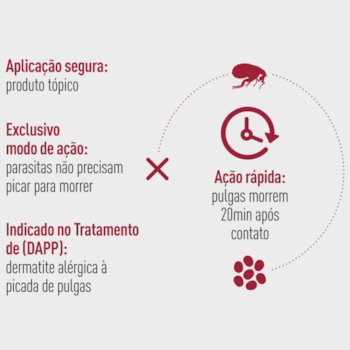 Mata as pulgas e carrapatos logo por contato, evitando assim as picadas;