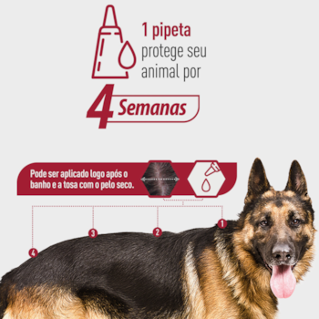 Aplicar o conteúdo da pipeta na nuca do pet, sendo necessário afastar o pelo até que sua pele esteja visível e realizar a aplicação.
