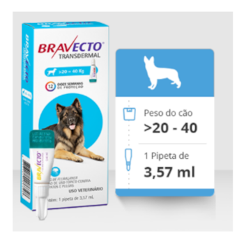 Antipulgas e Carrapatos Bravecto Transdermal 1000mg para Cachorros de 20kg até 40kg com 1 Pipeta