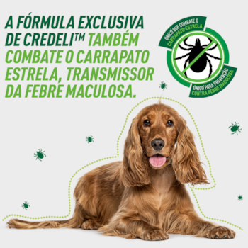 Antipulgas E Carrapatos Credeli é o único antipulgas que combate o carrapato-estrela, responsável pela transmissão da febre maculosa.