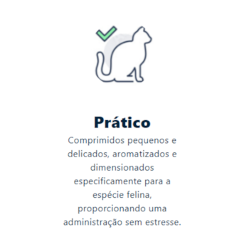 Os comprimidos são especialmente dimensionados e aromatizados para agradar aos paladares dos gatos, facilitando a administração e reduz o estresse tanto para o dono quanto para o pet.