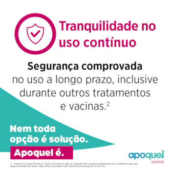 Seguro e eficaz até mesmo nos tratamentos prolongados, e o melhor sem os indesejáveis efeitos da ciclosporina e dos corticosteroides. Esse medicamento melhora a qualidade de vida do pet, assim que iniciam o tratamento os cães passam a dormir melhor e ficam mais relaxados e contentes.