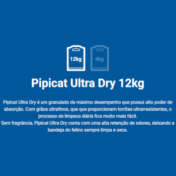 Areia Higiênica Para Gatos Pipicat Ultra Dry 12kg