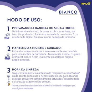 Recomendações de uso da Areia Higiênica Pipicat Bianco