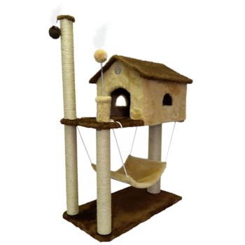 Arranhador House São Pet em Pelúcia Lisa Marrom e Bege e Sisal 70x35x104cm