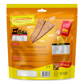 - Entretenimento Duradouro: Graças à sua textura e sabor duradouros, o Bifinho Petiscão Tablete de Frango mantém o seu cão entretido e feliz por horas a fio.