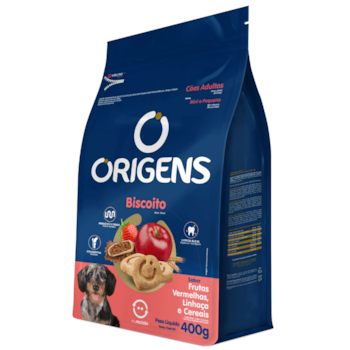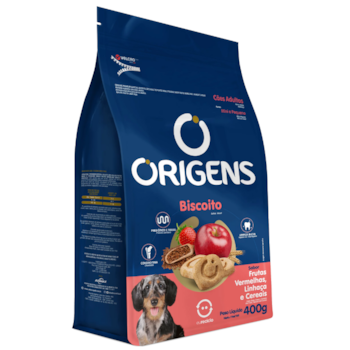 Biscoito Origens 400gr Cães Adultos Portes Mini E Pequeno Sabor Frutas Vermelhas, Linhaça e Cereais